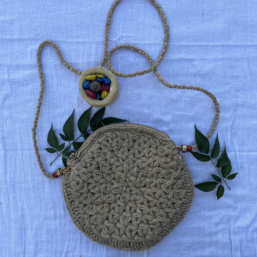 Pannchi Jute Crochet Round Sling Bag
