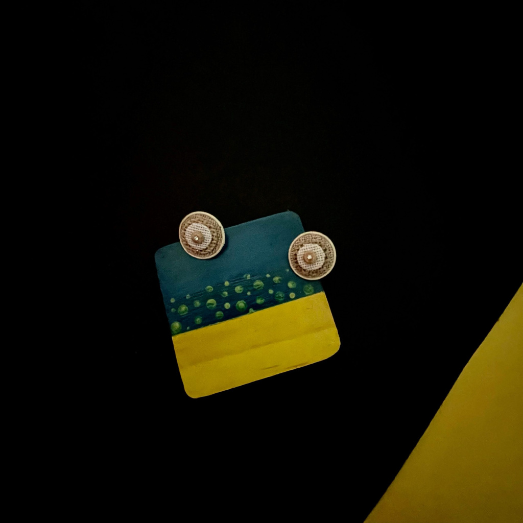 Jute and Yellow Circle Layer Top Earing