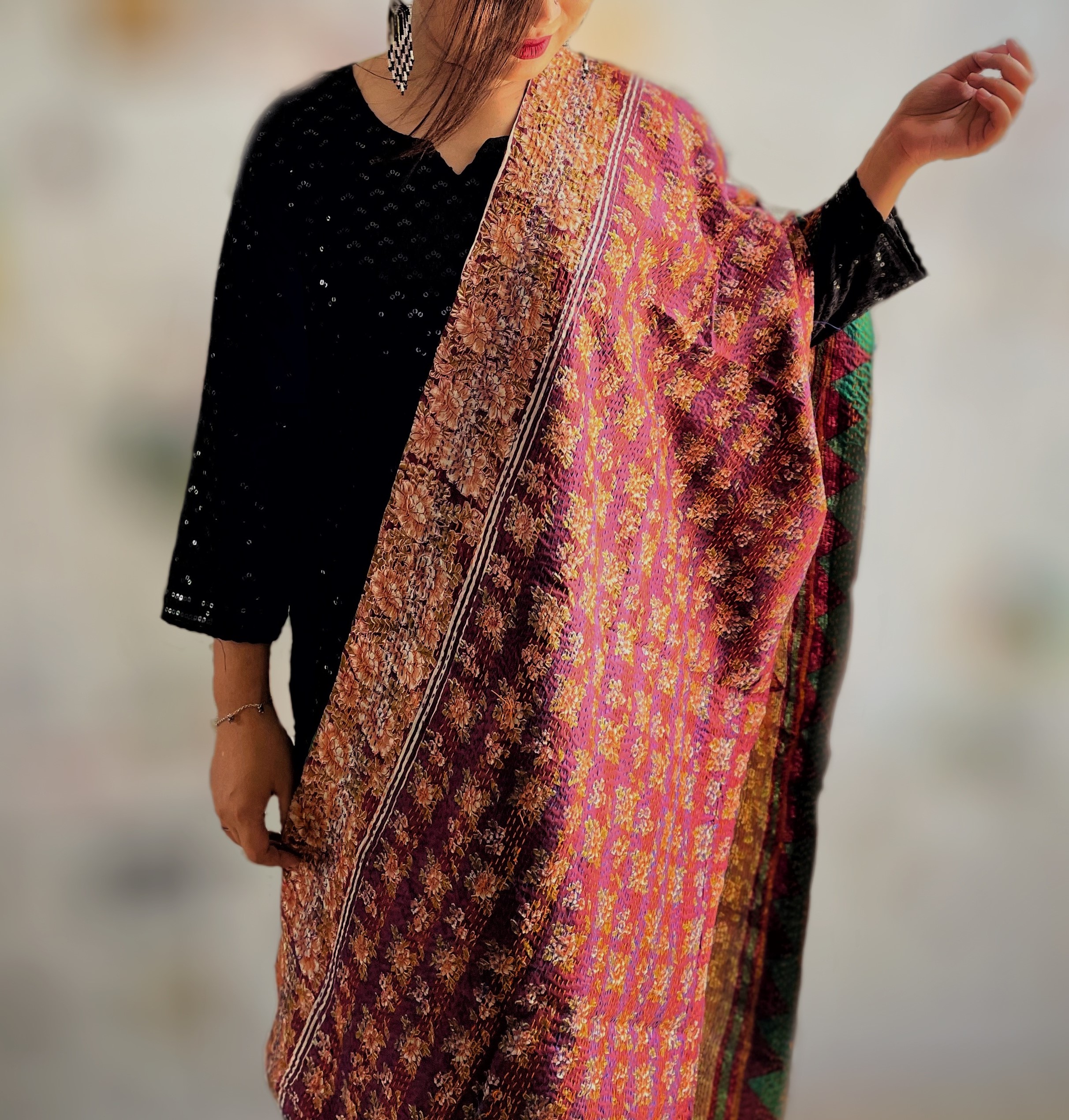 This is an exclusive handmade Katha Stitched Dupatta from the house of Pannchi.