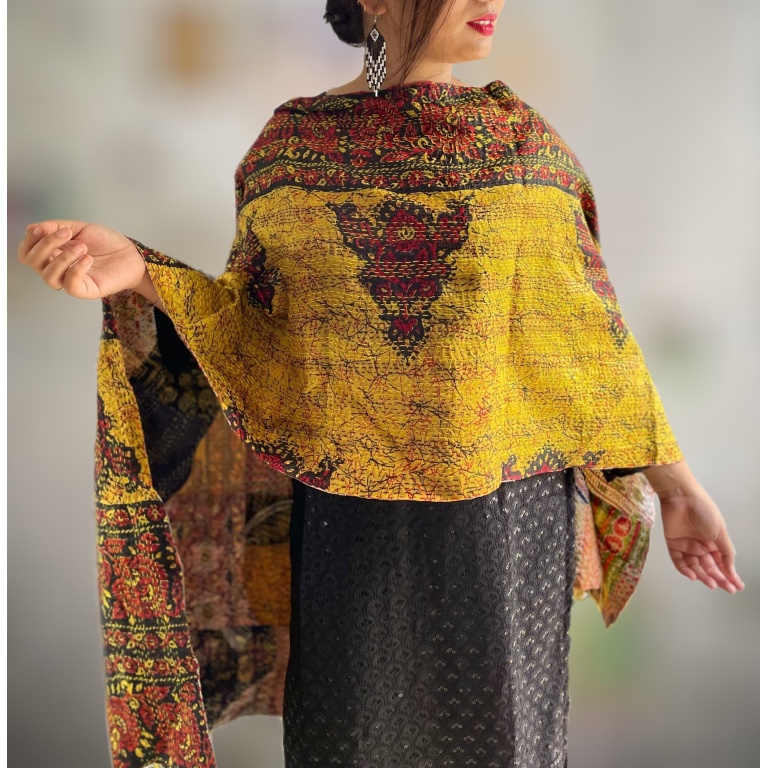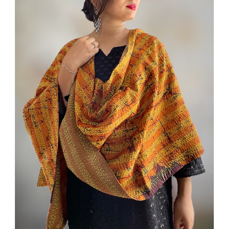 Katha Stitched Long Dupatta- Yellow & amp;Black
