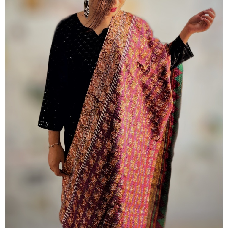 Katha Stitched Long Dupatta – Green & Multi Colour