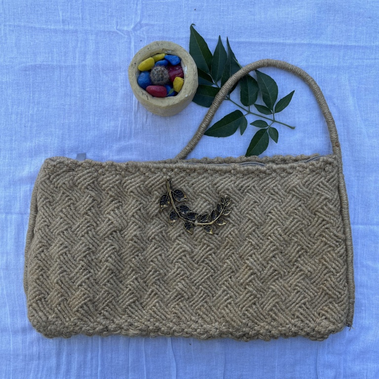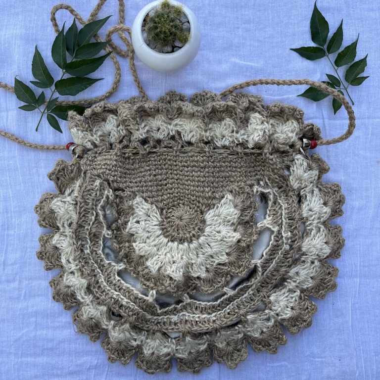 • Pannchi Jute Crochet Sling Bag - Jute & Green Pannchi Jute Crochet Sling Bag - Jute & Green ₹699.00